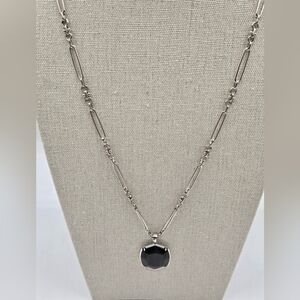KENDRA SCOTT Silver Chain Long Necklace w/ Onyx Pendant