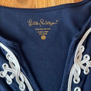 Lilly Pulitzer Cotton Navy Blue Embroidered Dress Size: Small