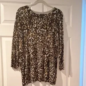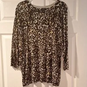 Elegant leopard print sweater by Talbots. Features a bold pattern. Ideal for a stylish look. lightweight merino wool. NOT itchy. a must have for this season
