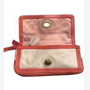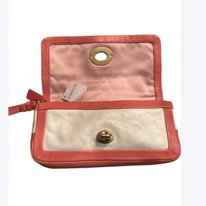 Coach Bag NWT 100% Leather wristlet clutch wallet in a two-tone design with a turn-lock closure.
