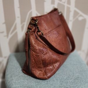 American Leather Co.: Embossed Brown Leather Shoulder Bag