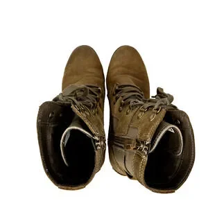 Sorel Emelie Conquest Boots Womens 7.5 Brown Combat Leather Utility Gorpcore