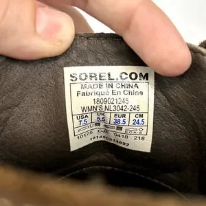 Sorel Emelie Conquest boots for women, size 7.5, in rich brown leather combine rugged utility with modern style. Featuring a combat-inspired design and durable construction, these lace-up boots are built for comfort and stability in all conditions. A versatile gorpcore staple, they transition seamlessly from outdoor adventures to casual city wear.