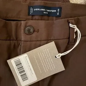 Stylish brown chinos. Perfect for any occasion. Comfortable fit. Everlane’s slim fit uniform in size 32 x 30
