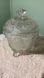 Vintage 1950s Clear Candy Vanity Powder Jar With Grapes And Leaves Jeannette Glass