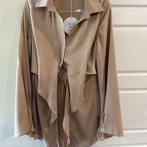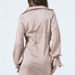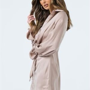 Princess Polly Size 6 Tie-front Shirt Mini Dress Silky Beige Baddie