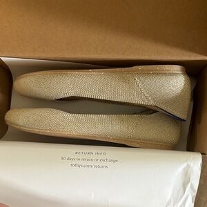 Rothy’s women’s flats, new in box and new with tags never worn. Size 8. Sparkly gold cream color