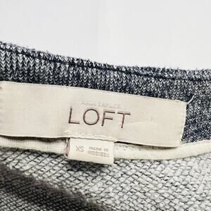The Ann Taylor Loft top is a stylish blue speckled blouse with a boat neck and long sleeves, perfect for casual occasions. Made from a comfortable cotton blend material, this top features a zipper accent and is designed in size XS. The classic boat neck and long sleeves add a touch of sophistication to the blouse, making it a versatile and fashionable choice for women's everyday wear.