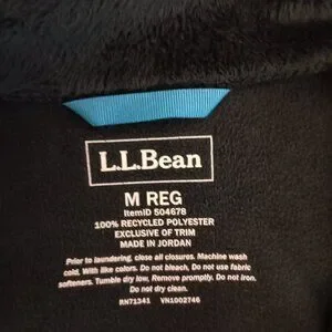 Cozy and classic L.L. Bean black full-zip jacket, style 504678. Features warm, soft microfleece outer, and 2 practical front zip pockets. Perfect for cool weather layering, hiking, or everyday wear. Excellent quality and comfort from a trusted outdoor brand. Women’s size Medium, excellent preowned condition.