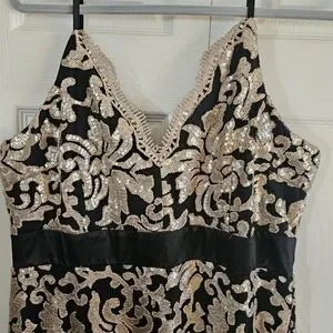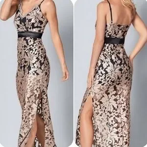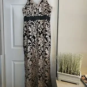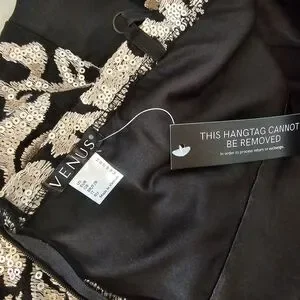 Elegant Black and Gold Lace Evening Gown By VENUS sz 16, NEW!