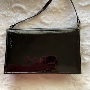 Vintage Black Envelope Clutch Evening Bag Slim Minimalist Purse with Chain Strap