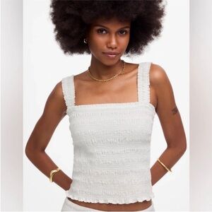 Crisp and lightweight in 100% cotton poplin, this tank is smocked all over for a fitted look.