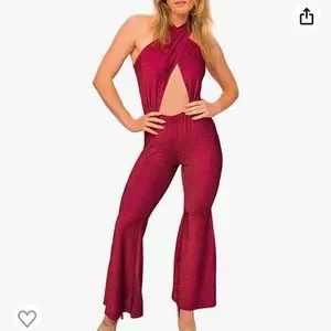 Cosplaya Pop Star Jumpsuit for Women Red Purple Bra Bell Bottom Pants Outfit