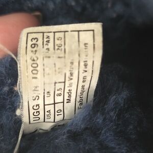 in excellent condition with normal wear. the soles are in great condition. the insoles have your typical UGG wear, there is very slight fading and the size tags show wear.