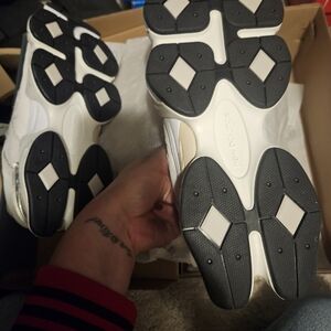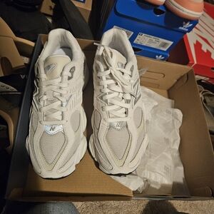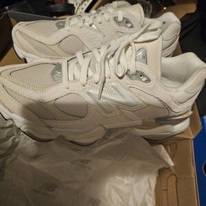 Stylish New Balance athletic shoes. Features a sleek white design with silver accents. Perfect for workouts and casual wear.