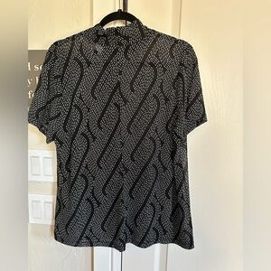 Stylish turtleneck featuring a unique black and white pattern. Perfect for both casual and formal occasions. Sheer. Runs small. New - never worn