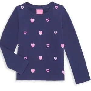 Stylish navy long sleeve shirt featuring pink heart accents. Perfect for casual wear.