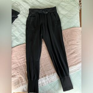Black jogger pant from Four Athletics. Ribbed waistband and cuff. Pockets. Drawstring in the waist.
