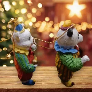 Clowns pig & panda bear ornaments multicolor