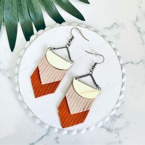 2/$30🌵 Rust Cream Gold Faux Suede Fringe Earrings Dangle Jewelry Bohemian NEW