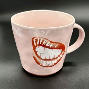 Stylish pink mug with 'Fierce & Feminine' design. Perfect for coffee or tea lovers.