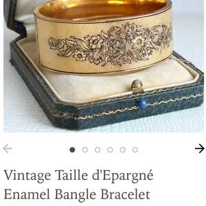 Elegant gold bangle bracelet with intricate floral enamel design. Perfect for adding a touch of sophistication.