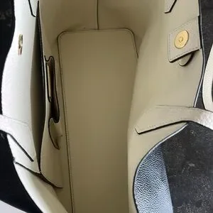 Elegant tote with a two-tone design. Features a spacious interior. Iconic logo detail on the front.