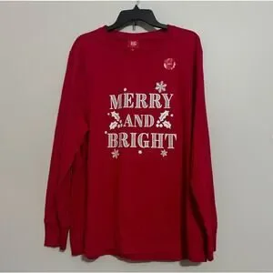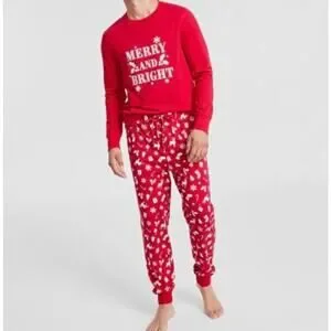 - Macys Pajama Set Mens Medium Red MERRY AND BRIGHT Holiday Festive Lounge Comfy