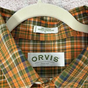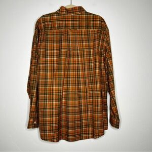 Orvis Orange Green Plaid Button Down Top Size XL Fall Autumn Office Outdoor