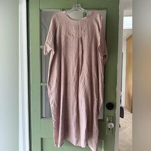Elegant rosey pink linen dress with short sleeves. Linen. Perfect condition. NWOT. Never worn. Size S/M