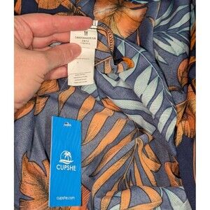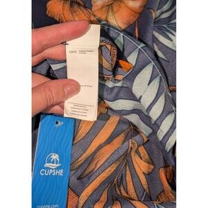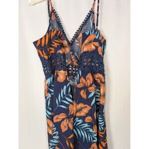 Cupshe Dress M Women's Blue Tropical Vneck Sleeveless Crochet A Line Mini Woven