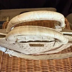 Brahmin Mini Arno Melbourne Beige Leather Satchel Handbag Shoulder Bag