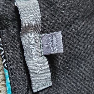 Vibrant maxi dress with geometric patterns. Features orange, black, and blue accents. Dize L.