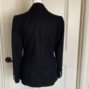 Elegant black blazer with classic design. Features a single-button closure and front pockets. Perfect for professional settings.