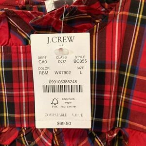 J. Crew Vibrant Plaid Ruffle Top Size L NWT