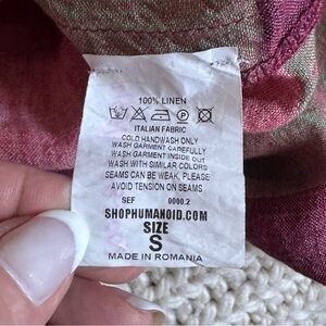Effortless and chic, this Humanoid dress is crafted from 100% Italian linen. Designed with a relaxed oversized silhouette, short sleeves, and a split neckline, it features bold horizontal stripes in shades of pink, burgundy, and olive. Lightweight and breathable, it’s the perfect summer dress for beach days, casual outings, or layering with sandals and slides for an elevated everyday look. Belt is not included