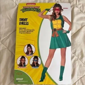 Raphael costume dress featuring green and red colors. Comes with eyemask, backpack, and gloves. Worn once! Bundle and save with the 2 other tmnt costumes
