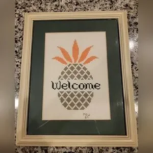 Cross Stitch Pineapple Welcome Professionally Matted And Framed