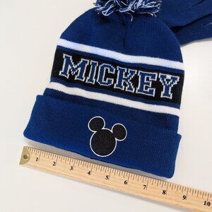 New Mickey Mouse Blue Pom Beanie hat with mini stretch gloves