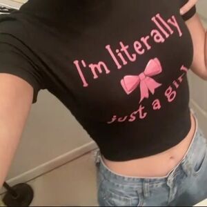 Just a girl Black and Pink Crop top Baby tee Size Large New