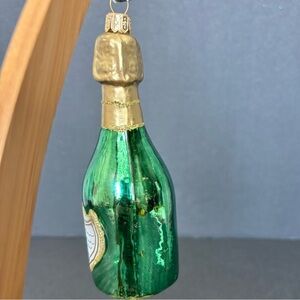 NWT Anthropologie Green Champagne Bottle ornament. This is hand blown glass ornament that measures approximately 5.5x2. A stunning ornament to add to your tree decorations. No hanger included.