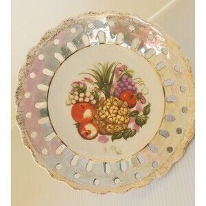 Antique Ucagco Pedestal Footed Pierced Fruit Hand Painted Ceramic Plate Luster