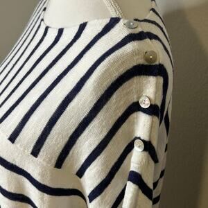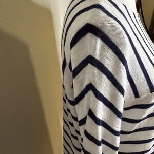 Eileen Fisher navy white striped organic linen cotton long sleeve sweater size M