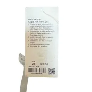 Keywords: Lululemon Align leggings, Align HR Pant 25", black leggings, high rise leggings, size 20 leggings, Lululemon pants, women's activewear, yoga pants, workout leggings, new with tags, NWT Lululemon, Lycra leggings, plus size leggings
