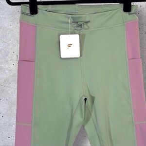 Fabletics Motion 365+ High Waist Bungee Leggings Womens Medium Green Pink NWT