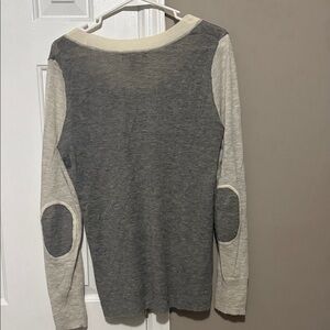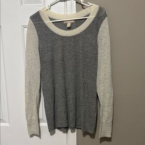 This *Banana Republic* women’s sweater combines timeless sophistication with cozy comfort. Crafted from soft Italian yarn, it features a beautiful gray and cream colorblock design with matching elbow patches for a refined touch. Lightweight yet warm, this alpaca-blend knit is perfect for layering or wearing on its own for an effortlessly chic look.