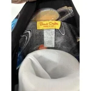 This dress was from a limited custom made run by Bernie Dexter, a true Renaissance woman! Pin up model, designer, seamstress--she does it all! This outer-space inspired dress features expert tailoring and a nice snatched waistline. The quality is evident in this all cotton dress. Made in USA--easy to wear and care for. You are guaranteed to have fun in this dress! Size medium--ask for measurements if interested!