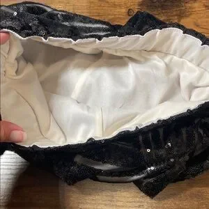 Stylish black sequin flare pants with a striking striped pattern. Inner liner. Perfect for a night out or your next T. Swift concert! Waist is 12.5” and stretches to 16”, rise is 12” and inseam is 30”. Bell on bottom of pant is 11.5”. No size tag but I would say a size small based on measurements.