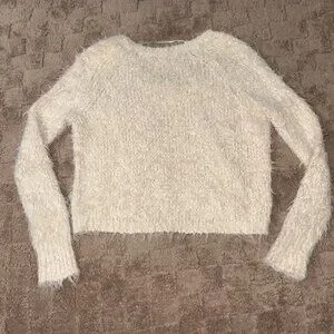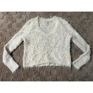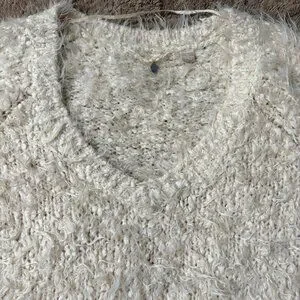 EXCELLENT Anthropologie Knitted & Knotted Ivory Fuzzy Snowfrost Sweater XS