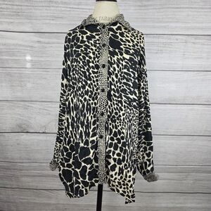 Dorman Vintage Animal Print Button-Up 100% Silk Blouse